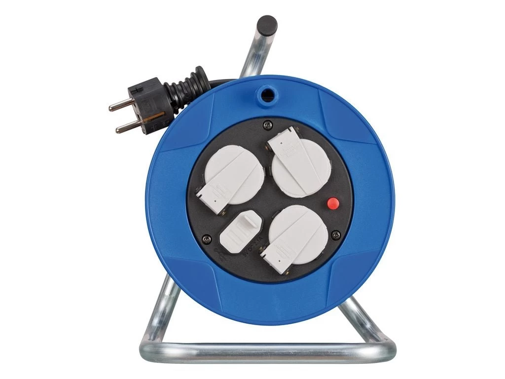 De kabelhaspel is voorzien van thermische beveiliging. Dit houdt in dat de stroom automatisch uitgeschakeld wordt in geval van overbelasting. Laat de kabelhaspel volledig afkoelen en druk dan op de rode knop om de haspel weer in gebruik te nemen.