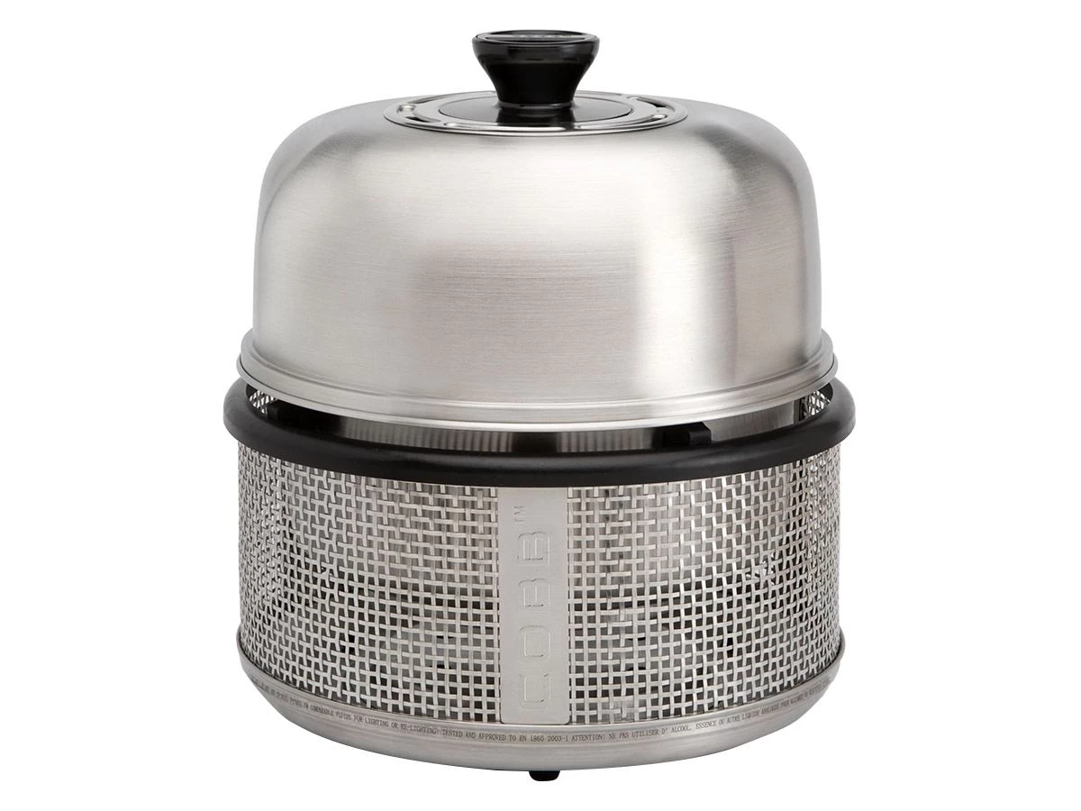 Het unieke aan de Premier Air is dat je met behulp van het draaisysteem onder de knop van de deksel de luchttoevoer kunt regelen. Hierdoor kun je de temperatuur van de COBB verlagen. De mantel van de COBB Premier is gemaakt van roestvast staal. De COBB Premier bestaat uit een mantel, kom, brikettenmandje en deksel.