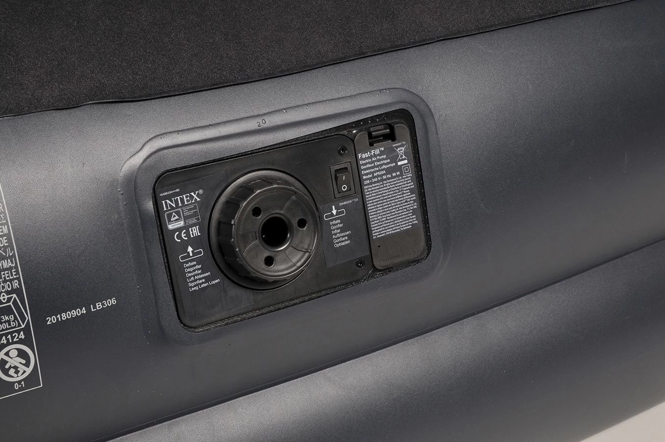 Het luchtbed is voorzien van een ingebouwde 220V pomp waarmee hij binnen 4 minuten opgepompt is. Geen gedoe meer met een losse pomp, maar alles netjes ingebouwd in het luchtbed. Houd er wel rekening mee dat je in de buurt moet zijn van een stopcontact.