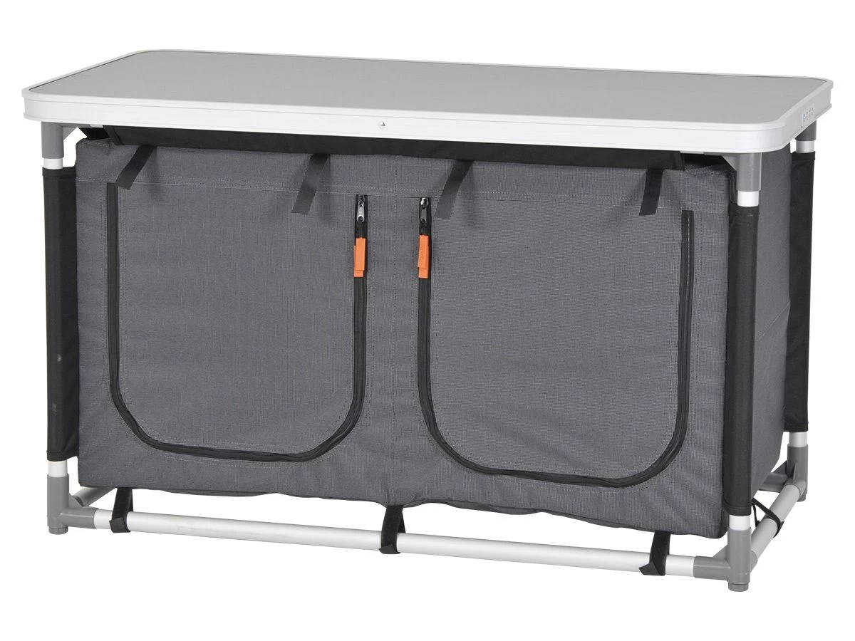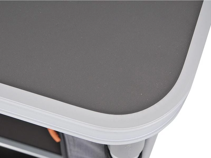 Dit campingkastje heeft vier ruime opbergvakken waarin je jouw kampeeruitrusting overzichtelijk kunt opbergen. De achterzijde is voorzien van mesh gaas dat ervoor zorgt dat de kast goed geventileerd wordt.