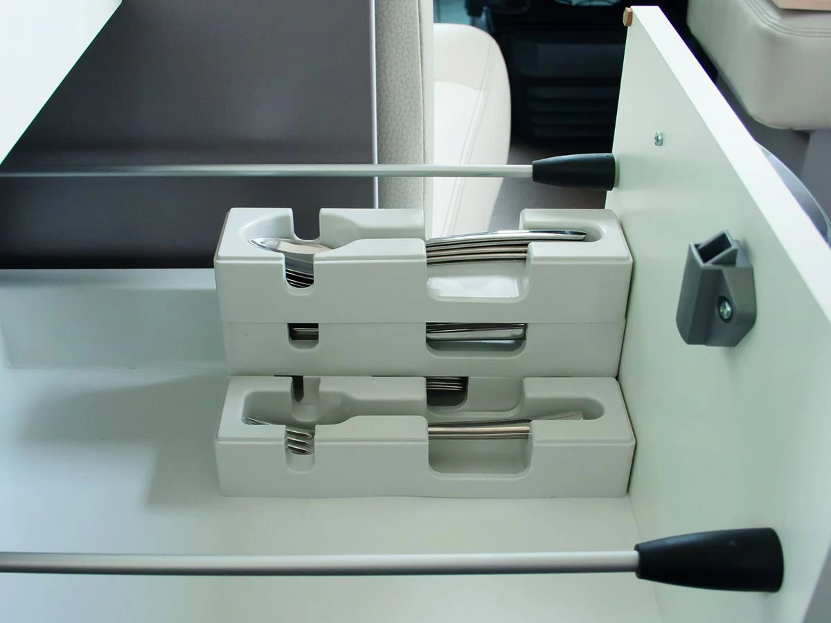 Het bestek blijft ook nog vast liggen omdat de vakken een voorvorming hebben in het vak. Ideaal tegen rondvliegend bestek! Deze set is vormvast en is ruimtebesparend!