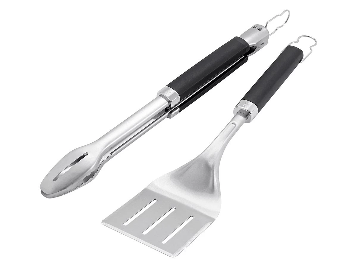Wil je nauwkeurig en probleemloos het voedsel op de barbecue hanteren? Met deze 2-delige Weber gereedschapset is dat super eenvoudig! De set bestaat uit een tang en een spatel, beide hebben een duurzame roestvrijstalen constructie en zachte antislip handgreep voor comfort en controle.